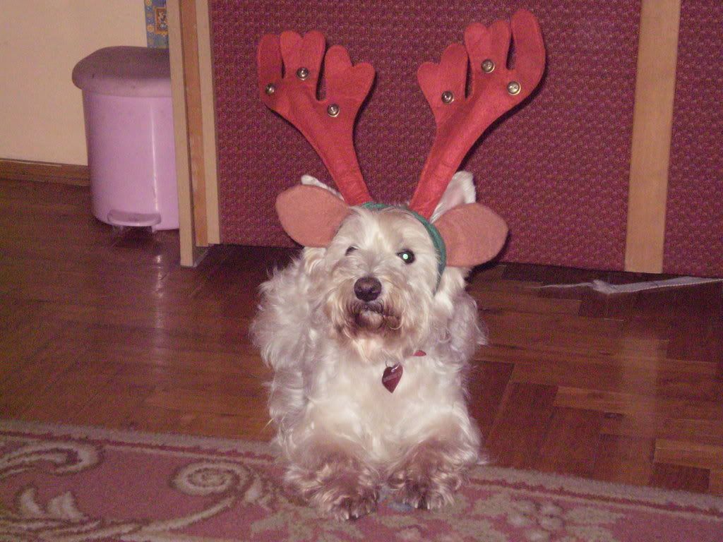 (There was going to be a pic of my dog in reindeer antlers, but he refused to cooperate, and ate the antlers. They had bells on. He's still ringing while he walks. Have a photo of him while he was still nice and cute and no a menace)